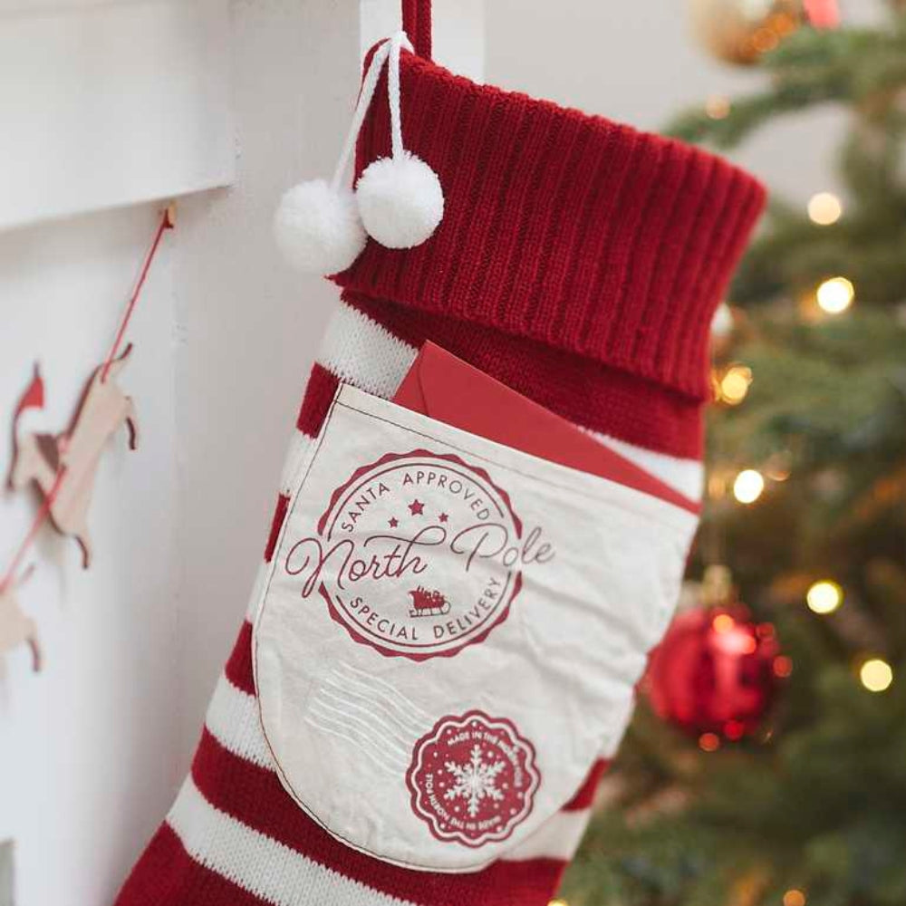 Gingerray Kalėdų kojinė raudona ir balta su kišenėle