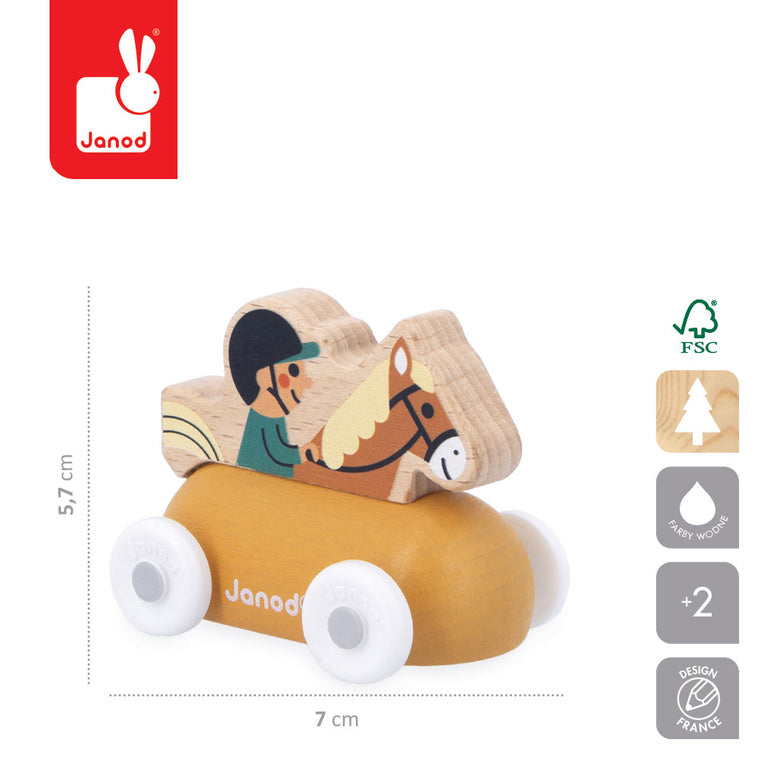 Medinis „Horse Rider“ automobilis iš „Cross Roads“ serijos, kurį gamina „Janod“, puikiai papildo tos pačios kolekcijos kilimėlį „City“, tačiau taip pat puikiai tinka kaip atskiras žaislas mažiesiems automobilių mėgėjams.