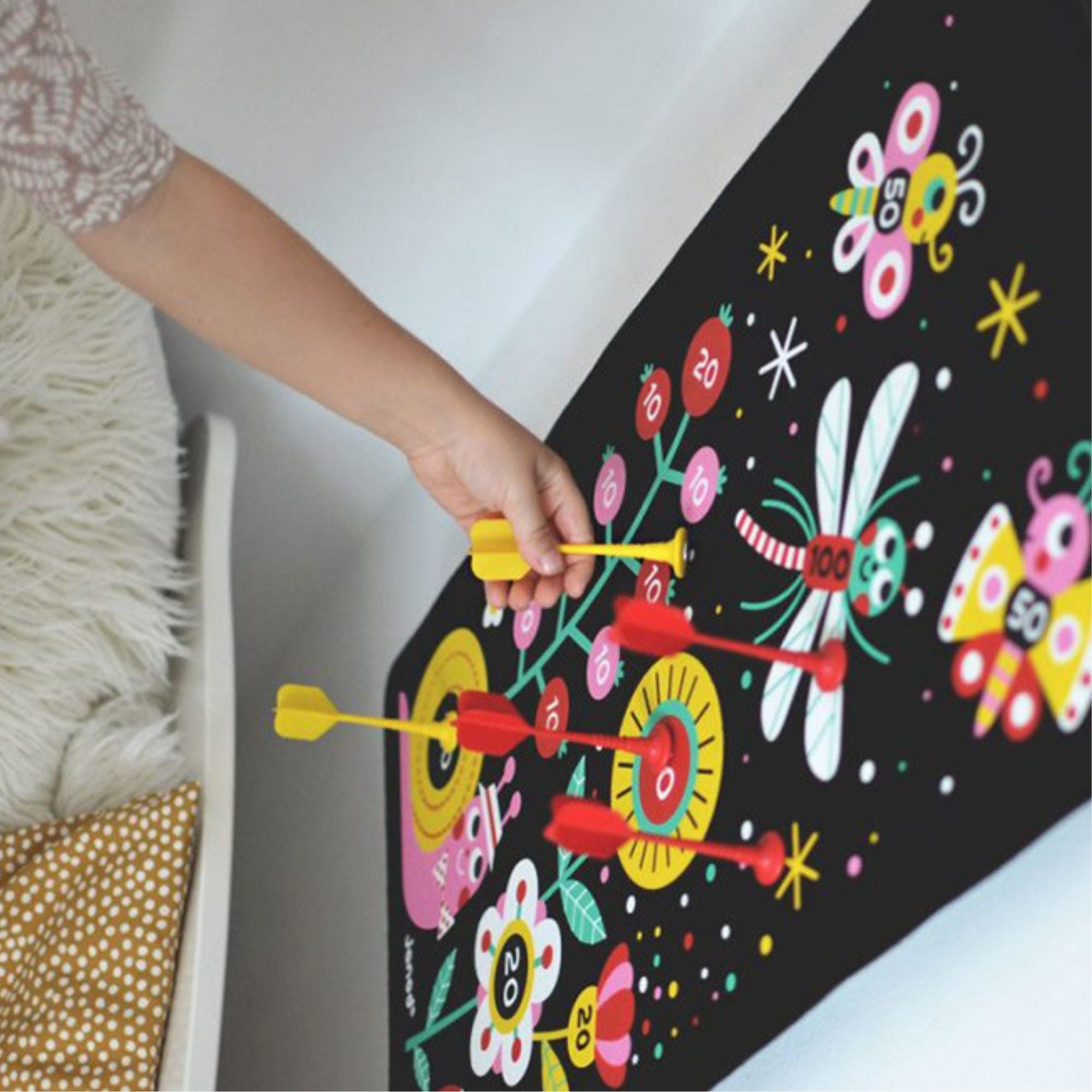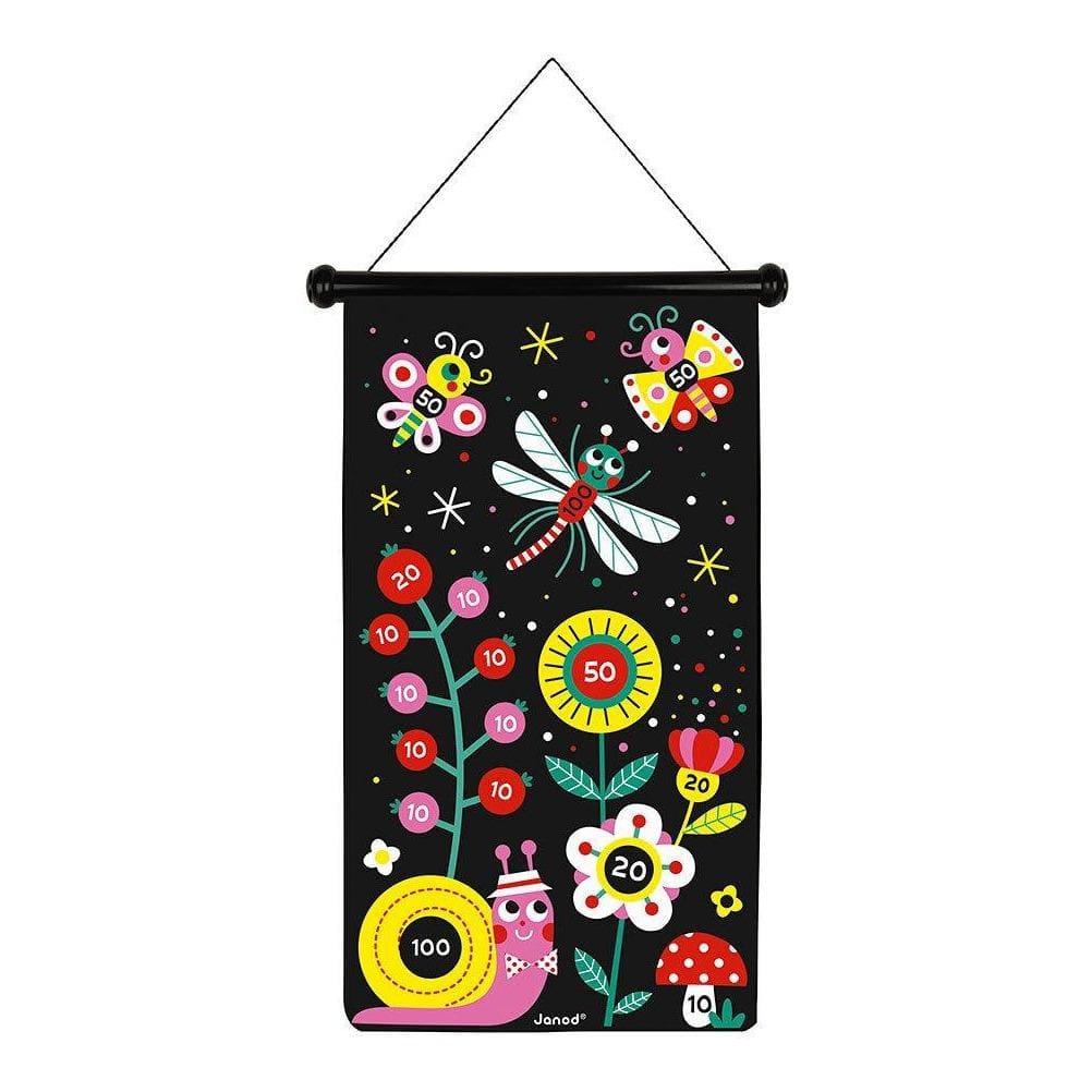 Janod magnetinis žaidimas „Garden Darts“ – puikus pramogų šaltinis visai šeimai. Tikslo audinys yra juodos spalvos, ant jo pavaizduoti monstrai, voratinklis ir vaiduoklių pilis. Darts turi būti mesti į tikslą iš žaidėjų nustatyto atstumo. Laimi žaidėjas, surinkęs daugiausiai taškų. Žaisdamas šį žaidimą, vaikas lavina koncentraciją, vikrumą ir ugdo akių bei rankų koordinaciją.