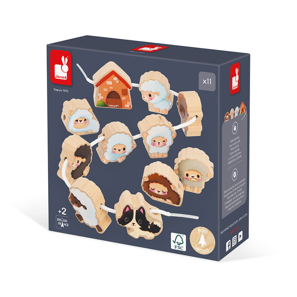 Medinis avių siūlų įvėrimo žaislas iš prancūzų prekės ženklo JANOD „Farm“ kolekcijos.