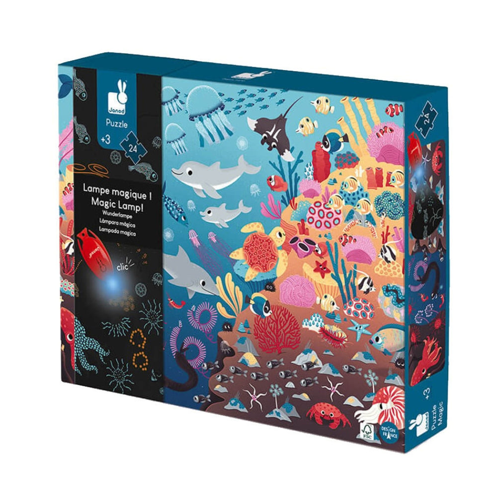 Janod Šviečiantis vaikų dėlionė su mini UV šviesa „Vandenynas“ 24 el.