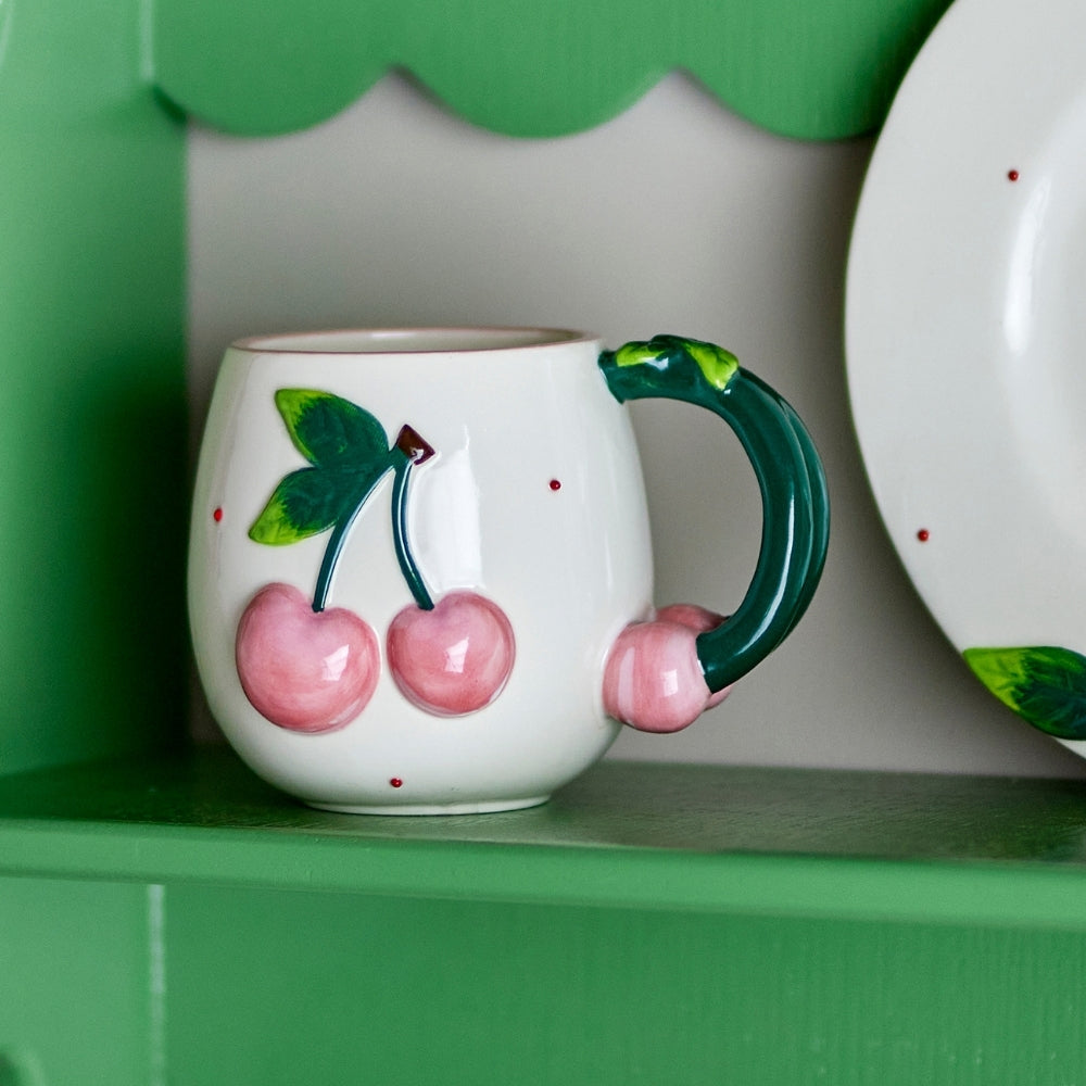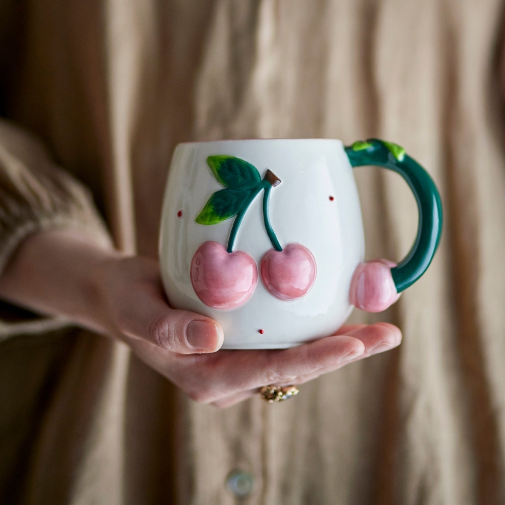 Šis unikalus keramikinis puodelis žavi savo apvalia forma, kreminiu paviršiumi ir rankomis tapytu rožinių vyšnių motyvu.