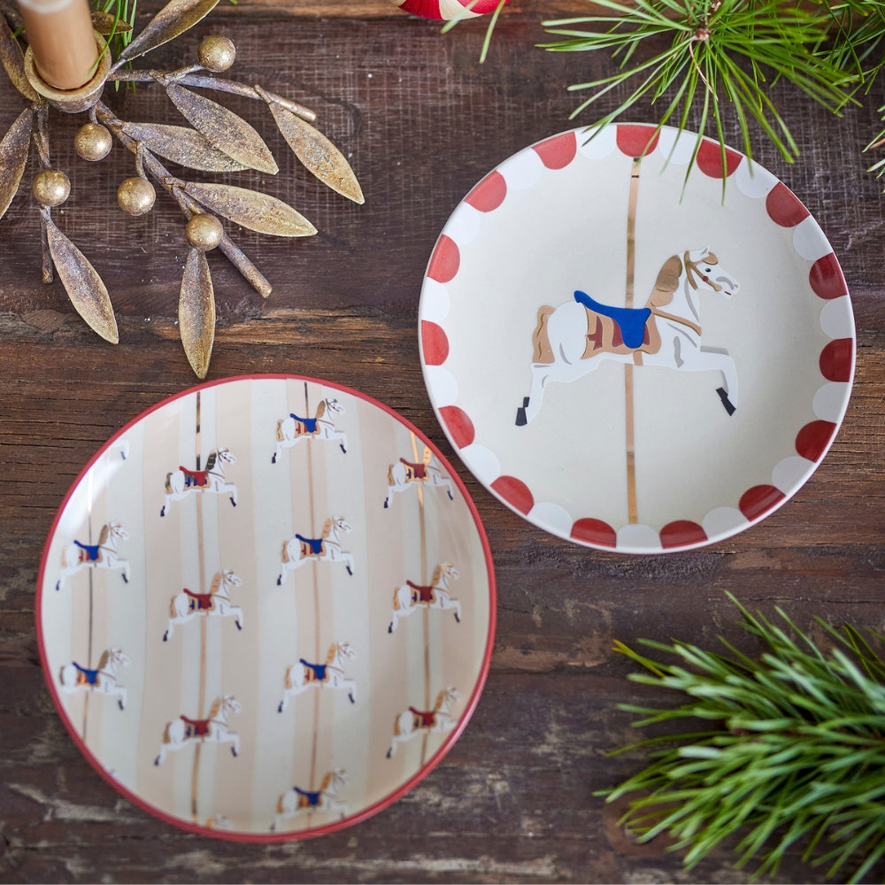 Kiekvienas kūdikių lėkštutė yra papuošta rankomis tapytu karuselės motyvu, suteikiančiu joms unikalų charakterį ir nostalgišką žavesį.
