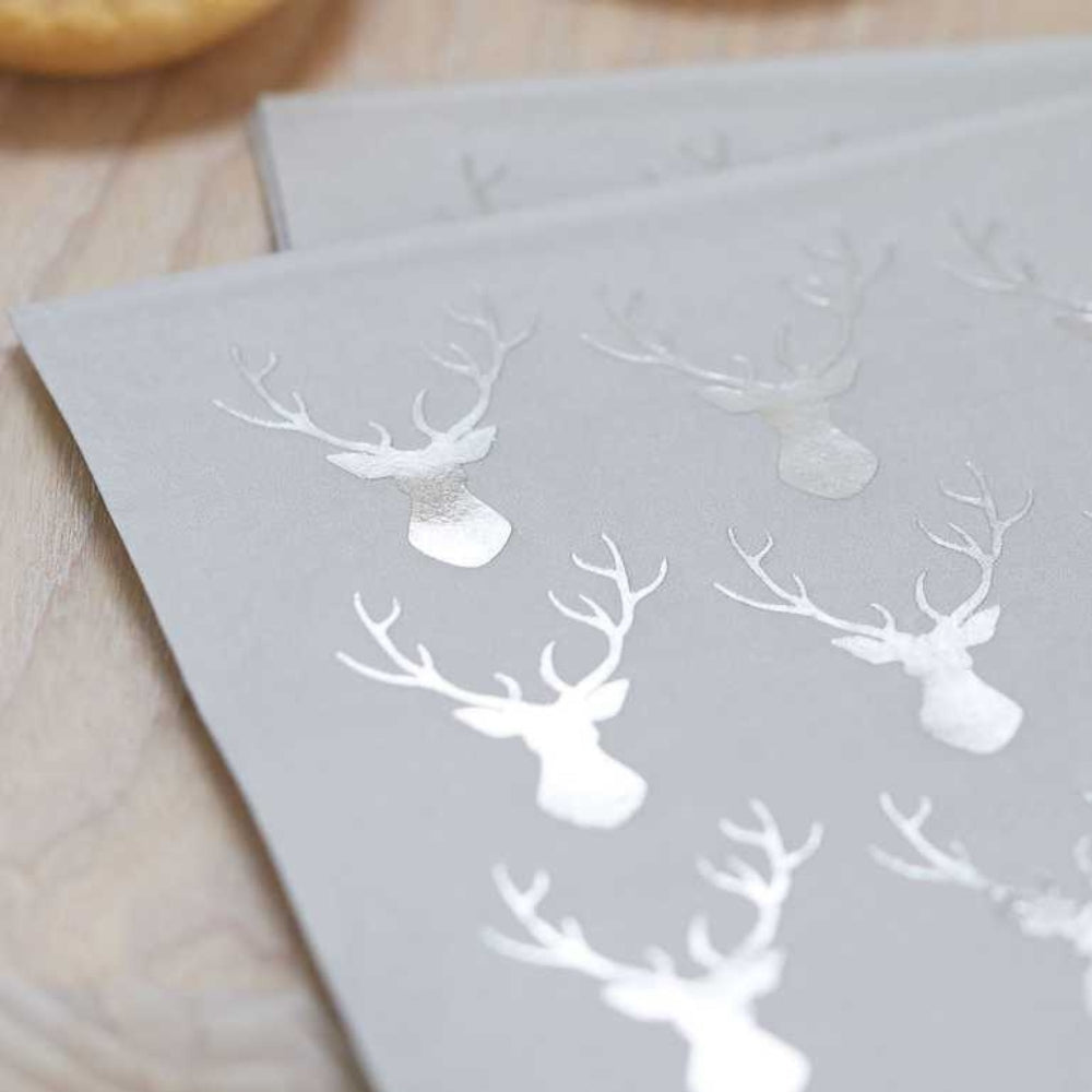Sukurkite elegantišką atmosferą ant savo šventinio stalo su mini kokteilinėmis servetėlėmis su elnio motyvu.