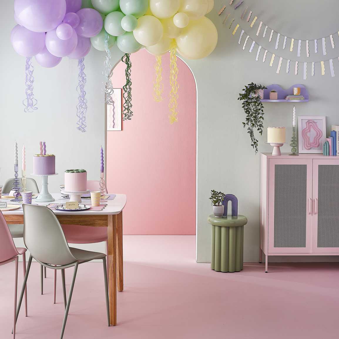 Ši sidabrinė šventinė juostelė su pastelinėmis detalėmis yra puikus gimtadienio akcentas.