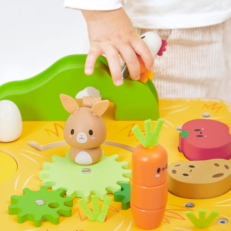 Janod Farm daugiafunkcinis medinis mokomasis stalas yra idealus žaislas vaikams nuo 1 metų amžiaus.