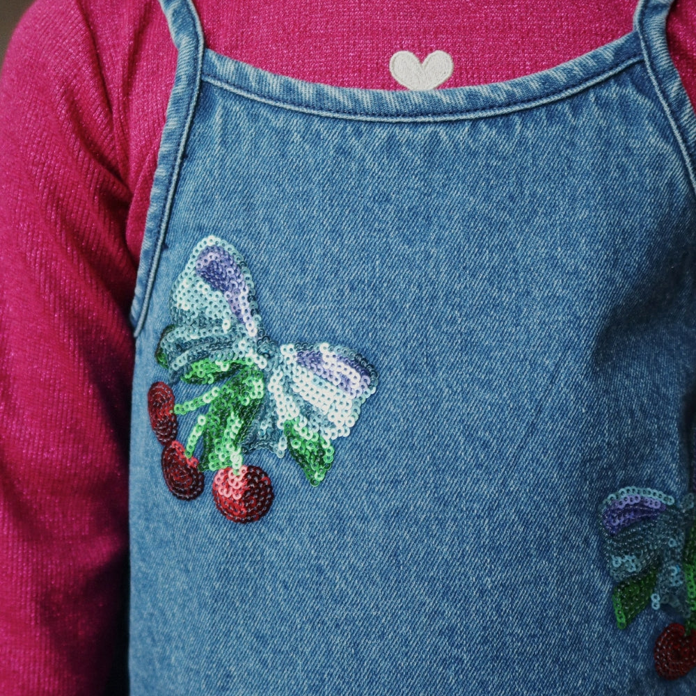 Pagaminta iš aukštos kokybės džinso, su subtiliais siuvinėjimais ir blizgučiais vyšnių kaspinais, kurie suteikia jai ypatingą akcentą.