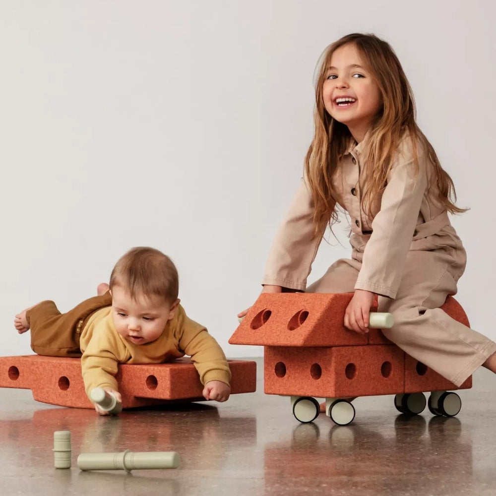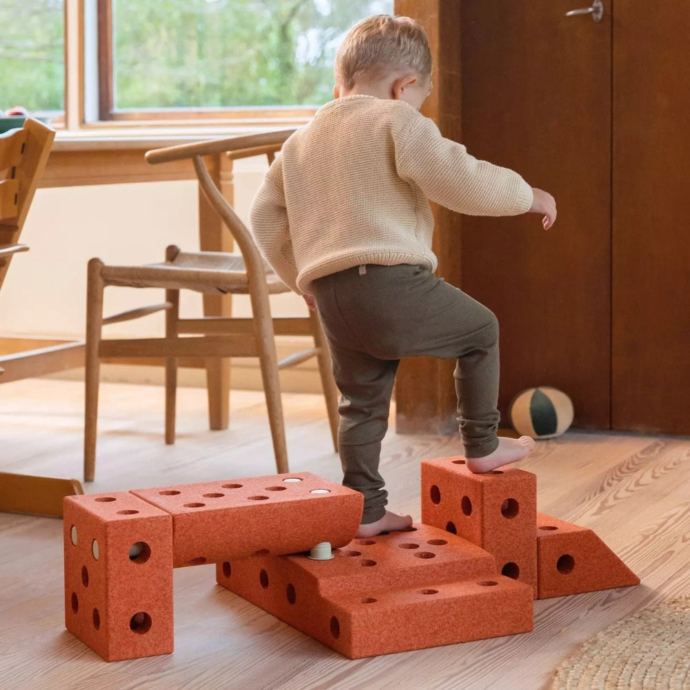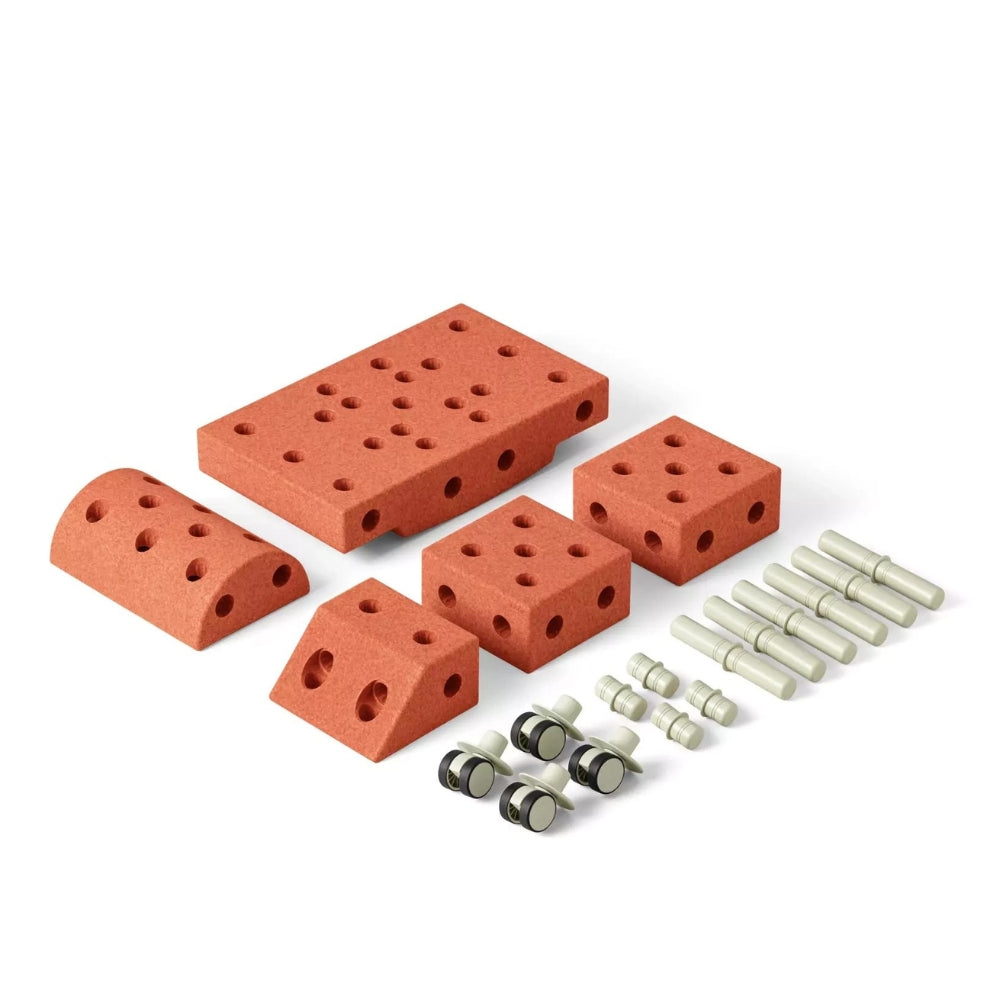 MODU statybiniai blokai vaikams „Explorer“ rinkinys, deginto oranžinės / dulkės žalios spalvos