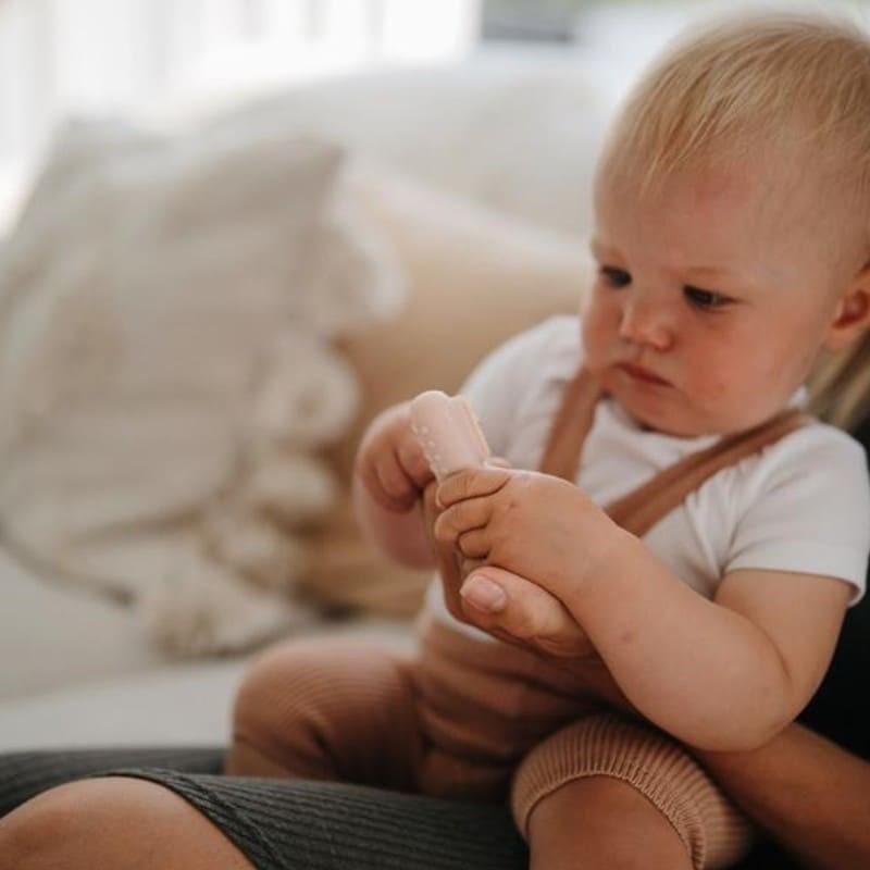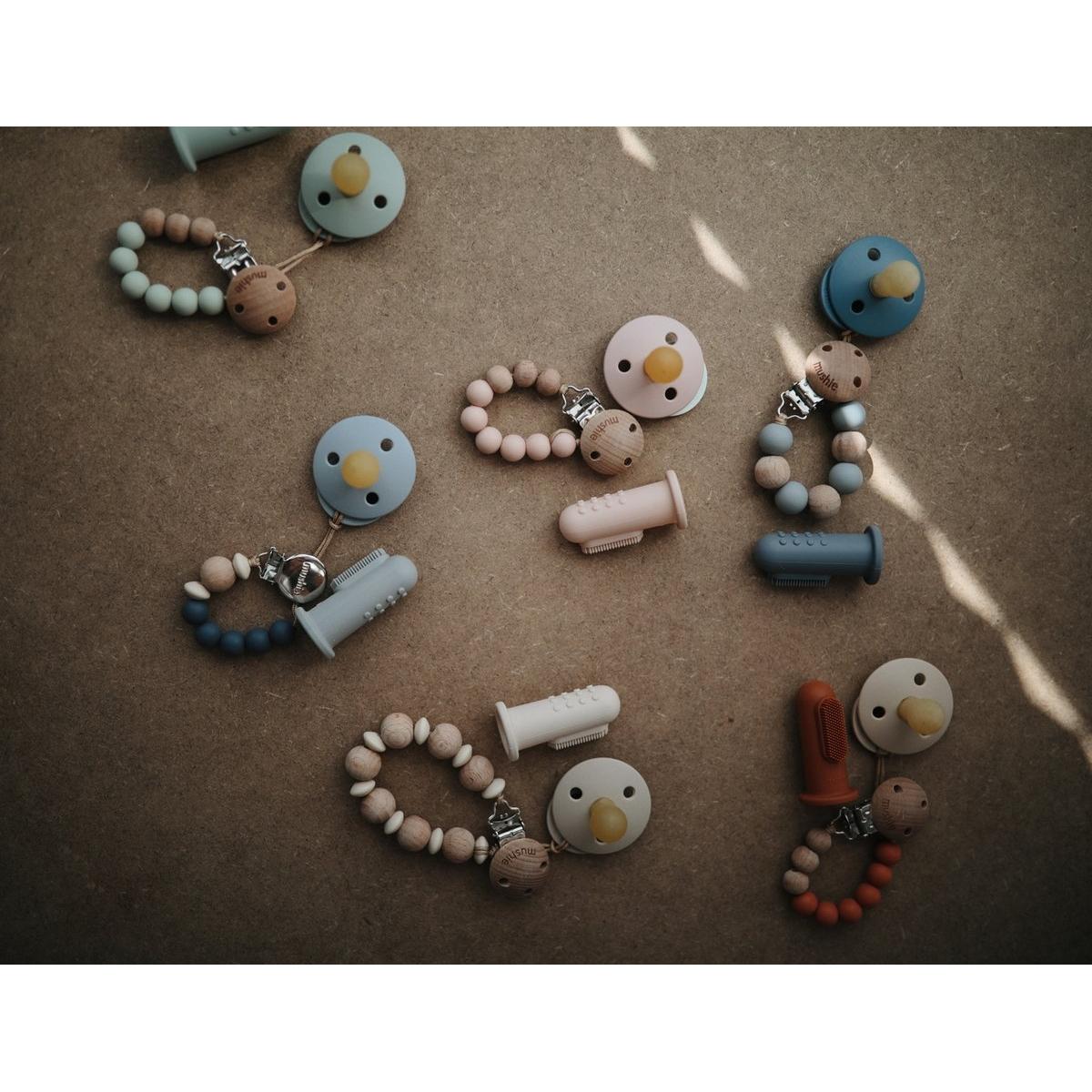 Mushie 2 pirmieji Cambrige Blue &, Shifting Sand pirštų šepetėliai kūdikiams nuo pirmųjų gyvenimo mėnesių.